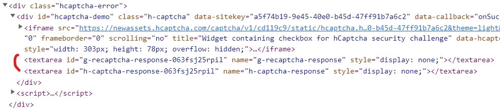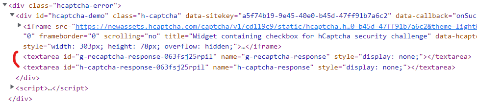 Định vị phần tử có id h-captcha-response và g-recaptcha-response và làm cho nó hiển thị bằng cách xóa tham số display:none.